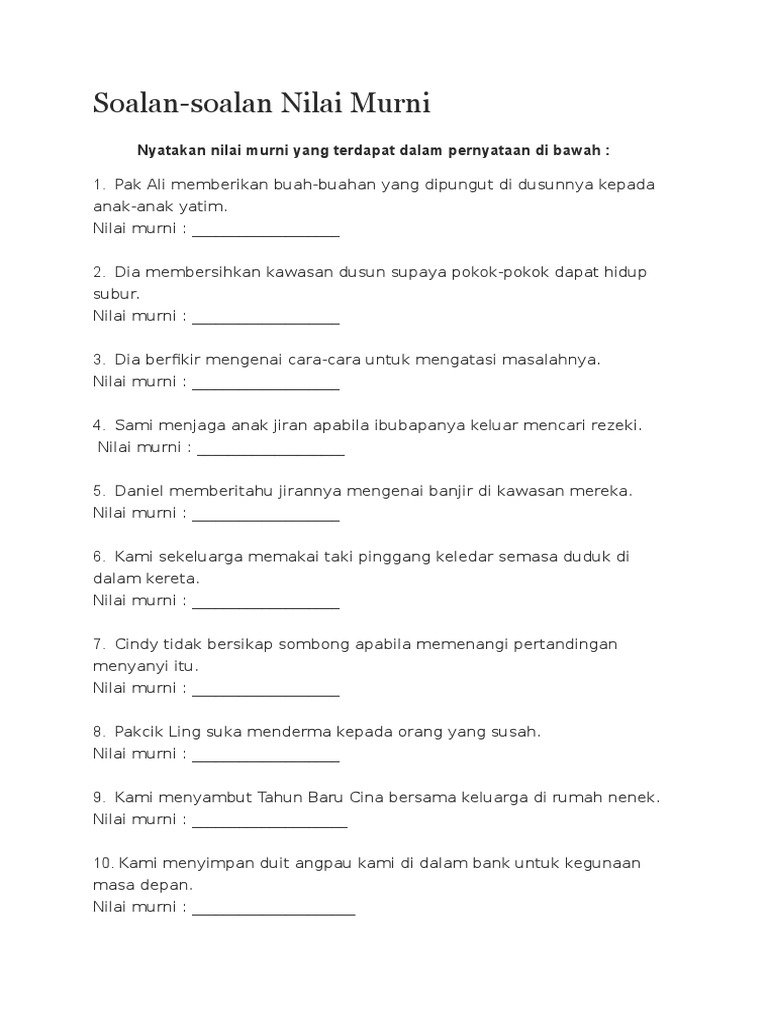 Nilai Murni Life Long Sharing Malay Language Nilai Reading Comprehension